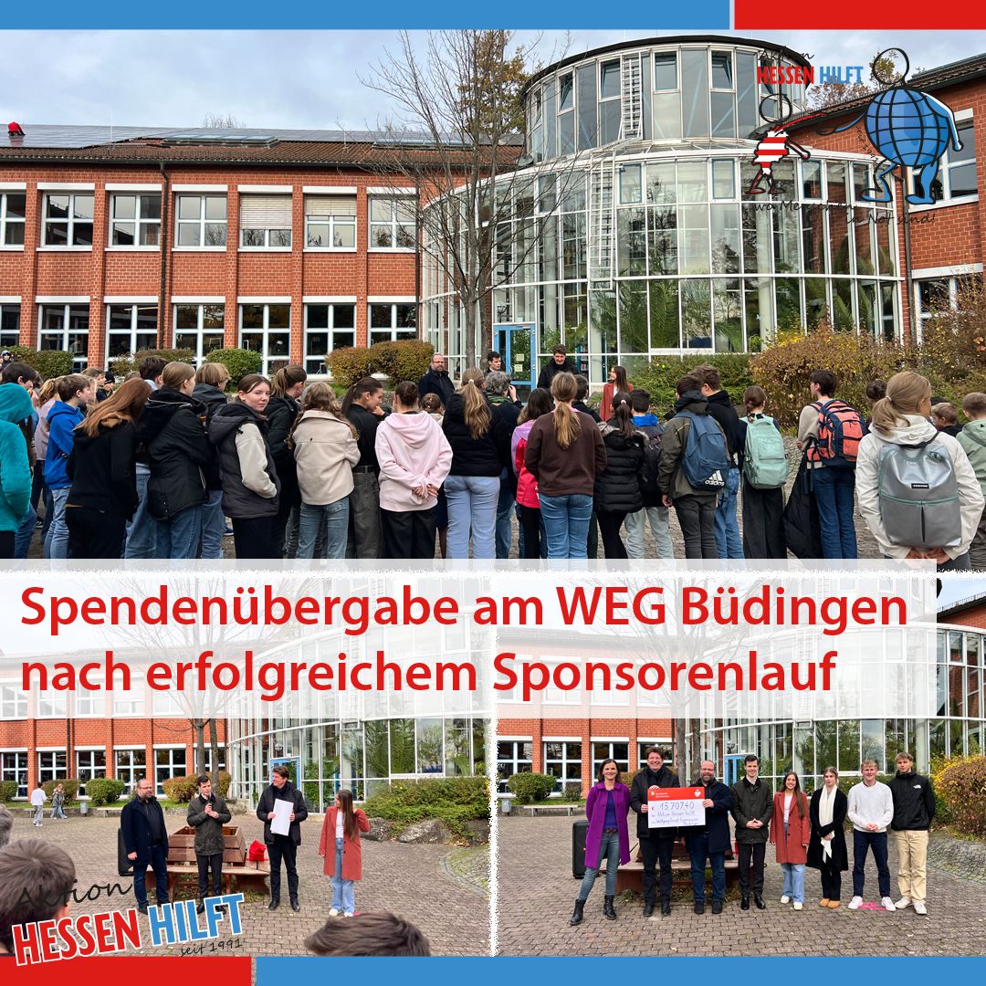 Anfang September fand bereits zum 3. Mal seit 2022 ein Sponsorenlauf am Wolfgang-Ernst-Gymnasium in Büdingen statt; im Sommer hatte die Schulkonferenz der Schule beschlossen, künftig jedes Jahr einen Sponsorenlauf zugunsten der ‚Aktion Hessen hilft‘ durchzuführen.