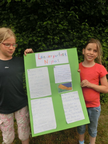 Dann haben wir gemeinsam mit den Kindern überlegt, wie wir den Menschen in Nepal helfen können. Casse aus der 4. Klasse hatte die Idee, dass wir Spenden sammeln könnten.