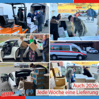 Auch 2026 geht es Schlag auf Schlag weiter: Das Family House des Kinderschutzbundes Frankfurt, zwei Hilfstransporte zusammen mit dem DRK Ortenberg und der Evangelisch-Lutherischen Kirchengemeinde Lang-Göns in die Ukraine sowie die Unterstützung einer hessischen Schule standen im Januar für uns im Mittelpunkt unserer Arbeit. 7.110 Beatmungssysteme und Zubehörprodukte, über 30.000 Kosmetik-/Hygieneartikel, dazu zahlreicher Kleinkinder- und Babybedarf wie Windeln, Babycreme oder Malstifte mit einem Gesamtwert von rund 100.000 € haben im Januar unser Hilfsgüterlager in Nidda verlassen. Wir danken allen, die dazu beitragen und unsere Hilfe möglich machen!